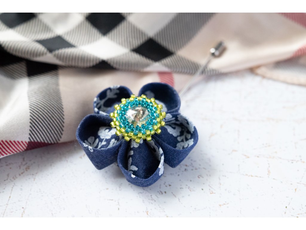 Tmavomodrou kanzachic brož jsem vyrobila proto,